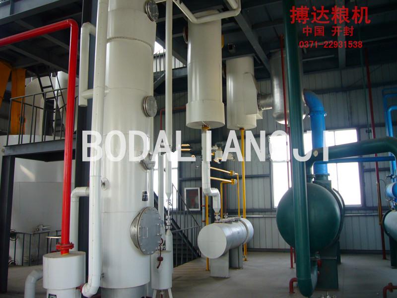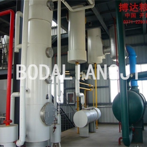 產(chǎn)品工藝過程是:把油料胚(或預(yù)榨餅)浸于溶劑中,使油脂溶解在溶劑內(nèi)(組成混合油),然后將混合油與固體殘?jiān)ㄆ桑┓蛛x,混合油再按不同的沸點(diǎn)進(jìn)行蒸發(fā)、汽提,使溶劑汽化變成蒸氣與油分離,從而獲得油脂(浸出毛油)。溶劑蒸氣則經(jīng)過冷凝、冷卻回收后繼續(xù)使用。粕中亦含有一定數(shù)量的溶劑,經(jīng)脫溶烘干處理后即得干粕,脫溶烘干過程中揮發(fā)出的溶劑蒸氣仍經(jīng)冷凝、冷卻回收使用。產(chǎn)生需要的油脂。